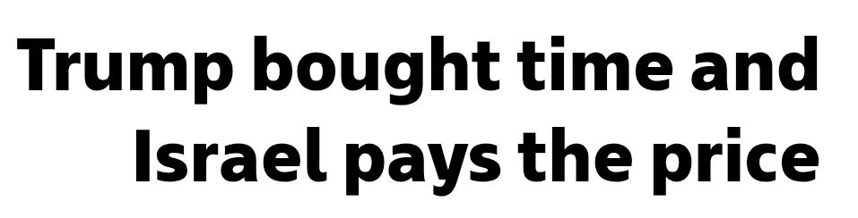 ”Trump får Israel att betala priset för en vapenvila som befriade honom från skyldigheten att hålla sitt ord och öppna helvetets portar för Iran.”