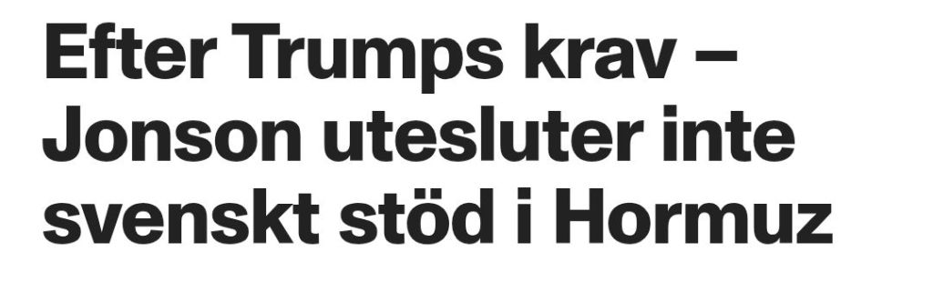 -”Klart att det frestar på sammanhållningen inom Nato. Precis som Grönlandskrisen gjorde det. Sverige har än så länge inte fått någon förfrågan om att skicka fartyg till Hormuzsundet. Vi har inte den typen av plattformar som fregatter eller jagare. Men jag utesluter inte att vi kan bidraga i en annan form, till exempel politiskt eller diplomatiskt.