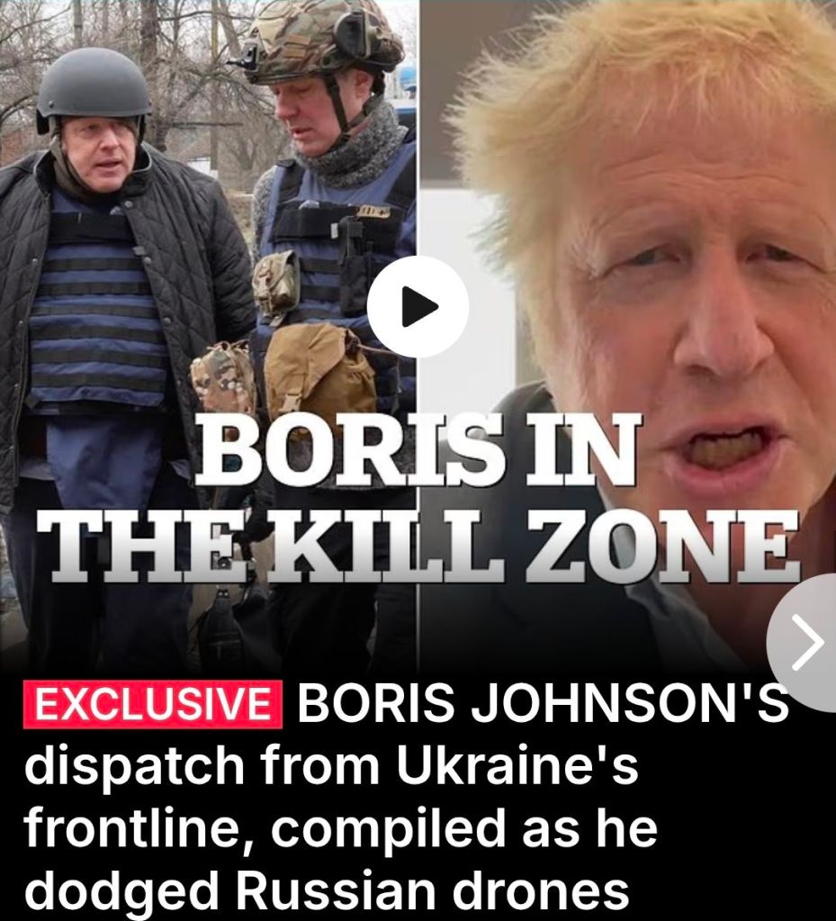 Med tanke på att Boris Johnson var med och hindrade Ukrainas ledare Zelenskyj från att skriva på fredsavtalet med Ryssland i mars 2022 i Istanbul och istället uppmanade Ukraina att fortsätta slåss, vilket bekräftats av Ukrainas dåvarande chefsförhandlare David Arakhamia, blir det smått patetiskt att höra BoJo beklaga sig över att de stackars ukrainarna lider samt bara vill att kriget ska ta slut – ett krig han medvetet såg till att hålla igång när han stoppade fredsprocessen efter order från det militärindustriella komplexet.