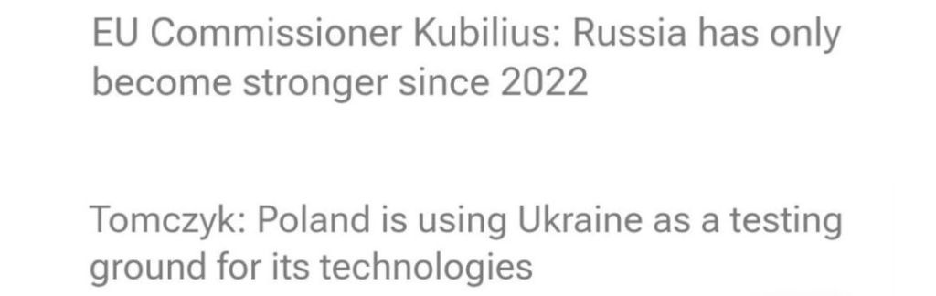 När EU:s försvarskommissionär Andrius Kubilius i dag talade under konferensen ”Vägen till URC – Säkerhets- och försvarsdimension” i polska Rzeszów till stöd för Ukraina, erkände han att Ryssland bara har blivit starkare sedan 2022. Detta gör logiken kring de rekordmånga sanktionspaketen som skadar EU mest, än mer obegripligt och det rimmar dessutom illa med det återkommande narrativet i svensk massmedia som påstår att Ryssland är svagt och på randen till kollaps.